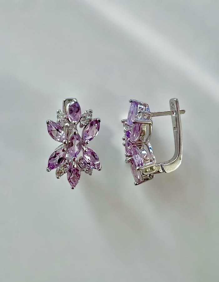 Луксозни сребърни обеци „ Ааметист – Роял“