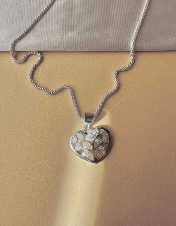 Елегантно сребърно колие с висулка във формата на сърце украсено с циркониеви камъни .