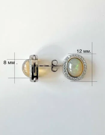 Ще ви впечатлят с неповторимия блясък на разкошните Опали ( кабишон 8 мм х 6 мм.) подчертани от малки цирконий.