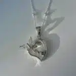 Елегантно сребърно колие с висулка във формата на сърце украсено с кристали и пеперуда . Класически сребърен дизайн с ефектен елемент от качествено сребро с родиево покритие.