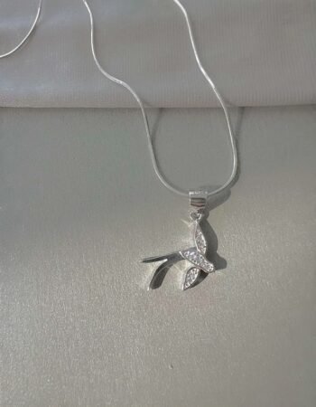 Романтично сребърно колие ”Лястовица”е изработено от висококачествено сребро с проба 925 покрито с родий и украсено с циркониеви камъни които обсипват изящния талисман във формата на лястовица