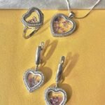 Kомбинация от красиво колие ,обици и нежен пръстен във формата на сърце.