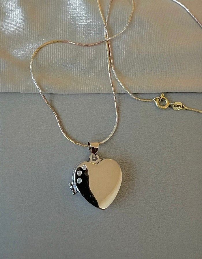 Елегантно сребърно колие с кутийка за снимка “Сърце„