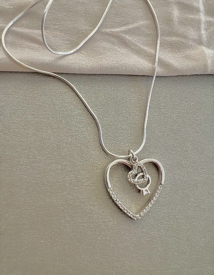 Стилно сребърно колие „ Две сърца“